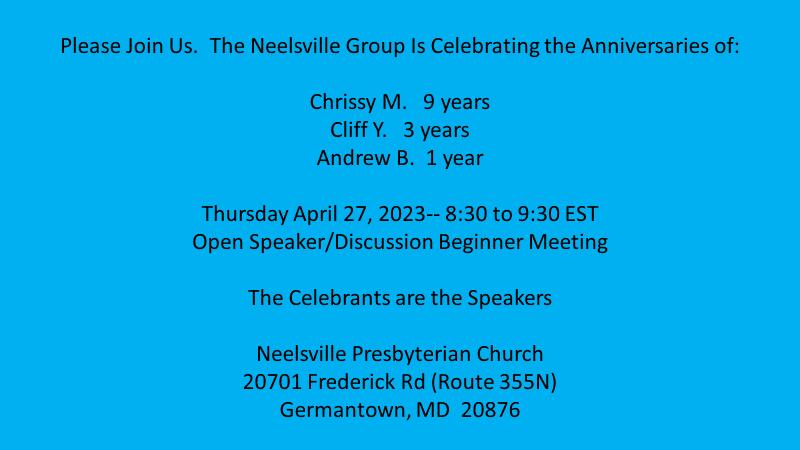 The Washington Area Intergroup Association is a service board of representatives from the groups in the Washington Area, including Montgomery and Prince George’s Counties, MD, as well as Washington, DC.